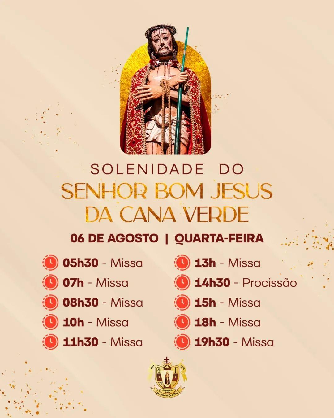 Confira a programação das Missas no dia 6 de agosto, Solenidade do Senhor Bom Jesus da Cana Verde!